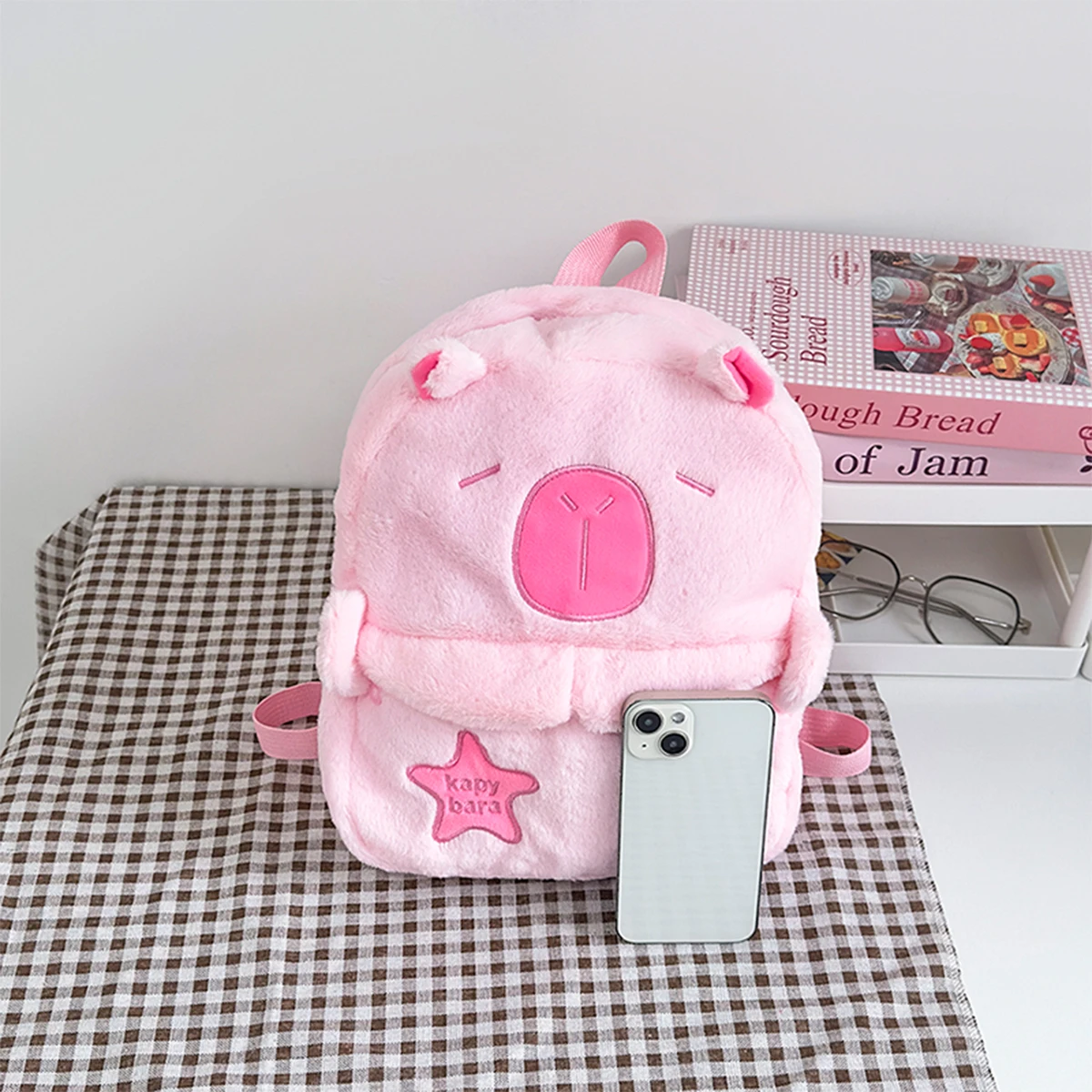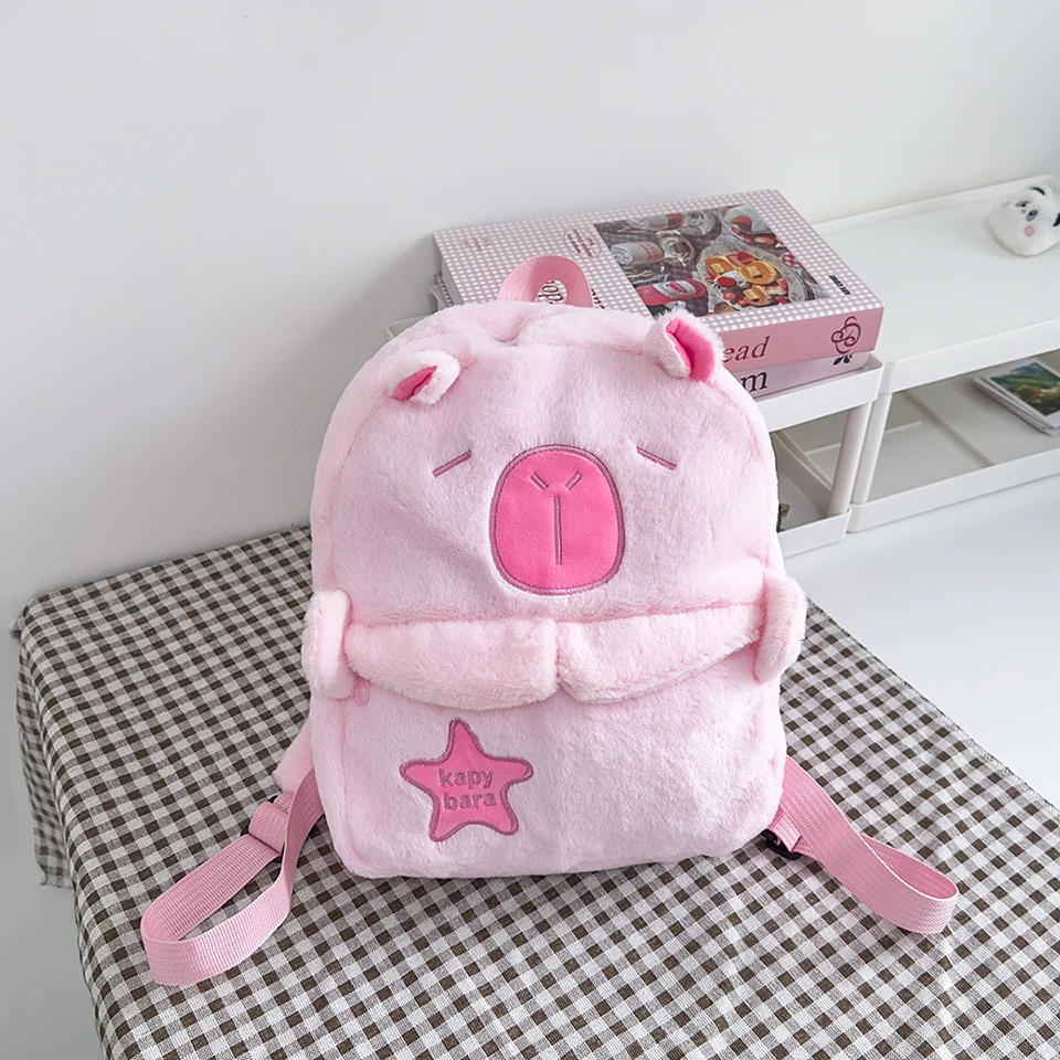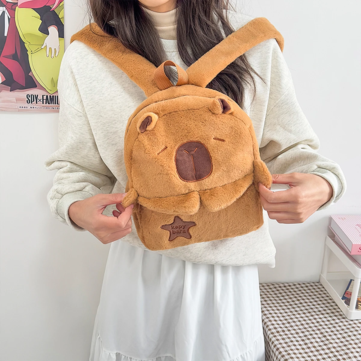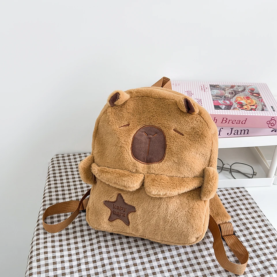 Pelúcia capibara macia e fofa com bordados detalhados adiciona um toque lúdico e elegante à sua roupa.