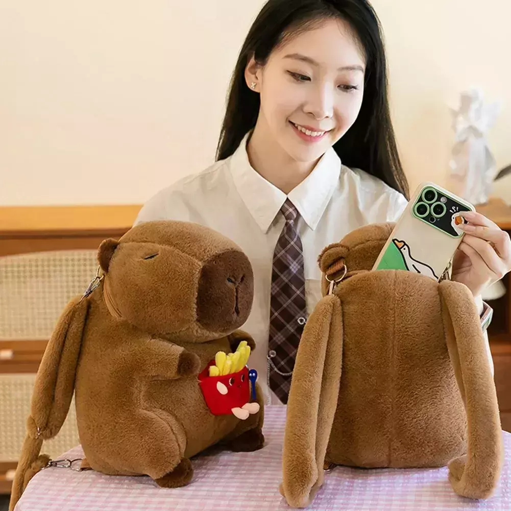 Bonito capybara mochila de pelúcia engraçado dos desenhos animados capybara bolsa de ombro crianças mini mochila para meninas crianças